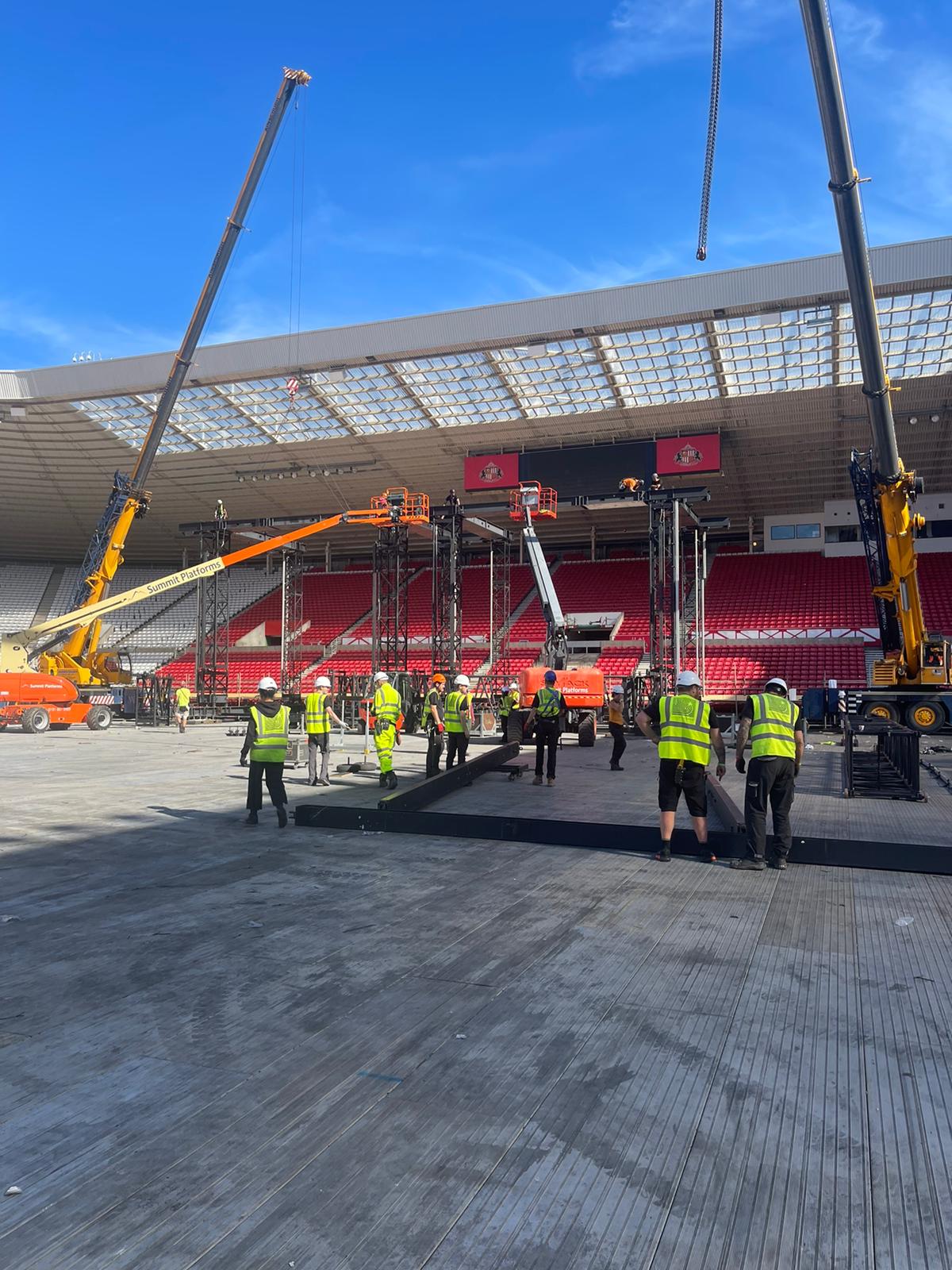 We provide support for large-scale area concerts, managing complex stage builds, set , AV elements. This work demands precision and coordination, including flooring, staging, barriers, back-of-house setups and overnight changeovers. We handle every phase, from load-in to final de-rig, with safety, efficiency and accuracy while working seamlessly alongside multiple contractors in busy environments.